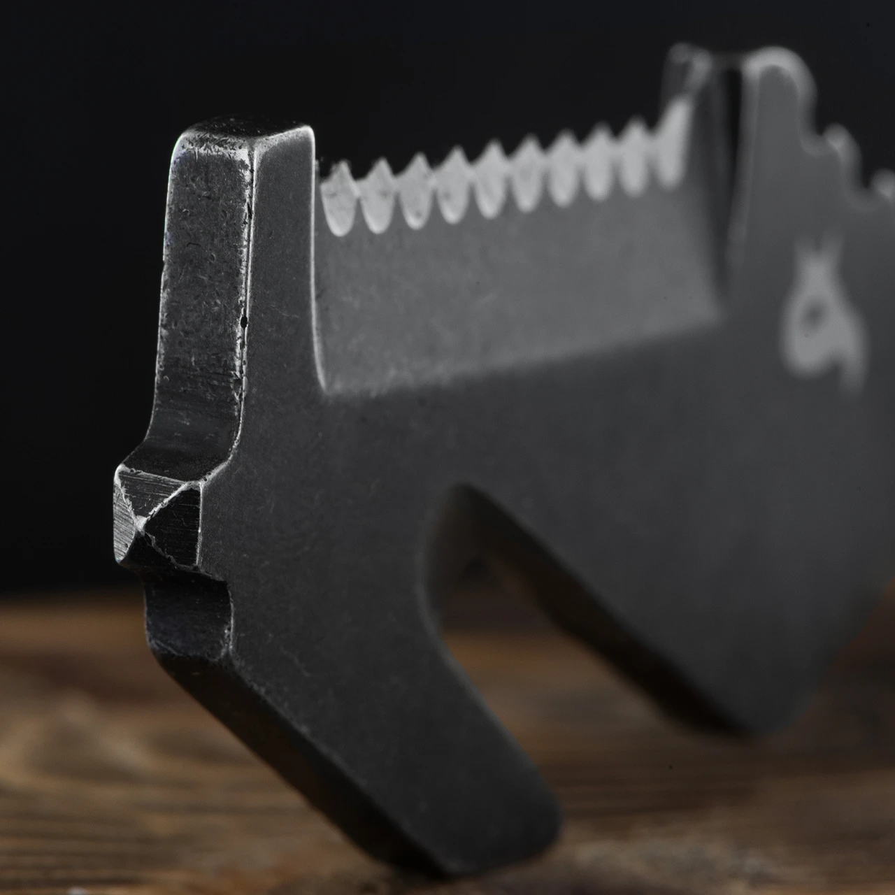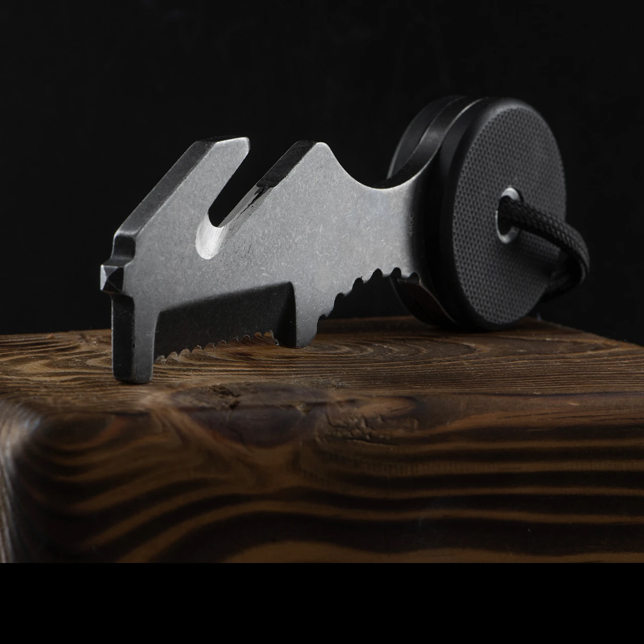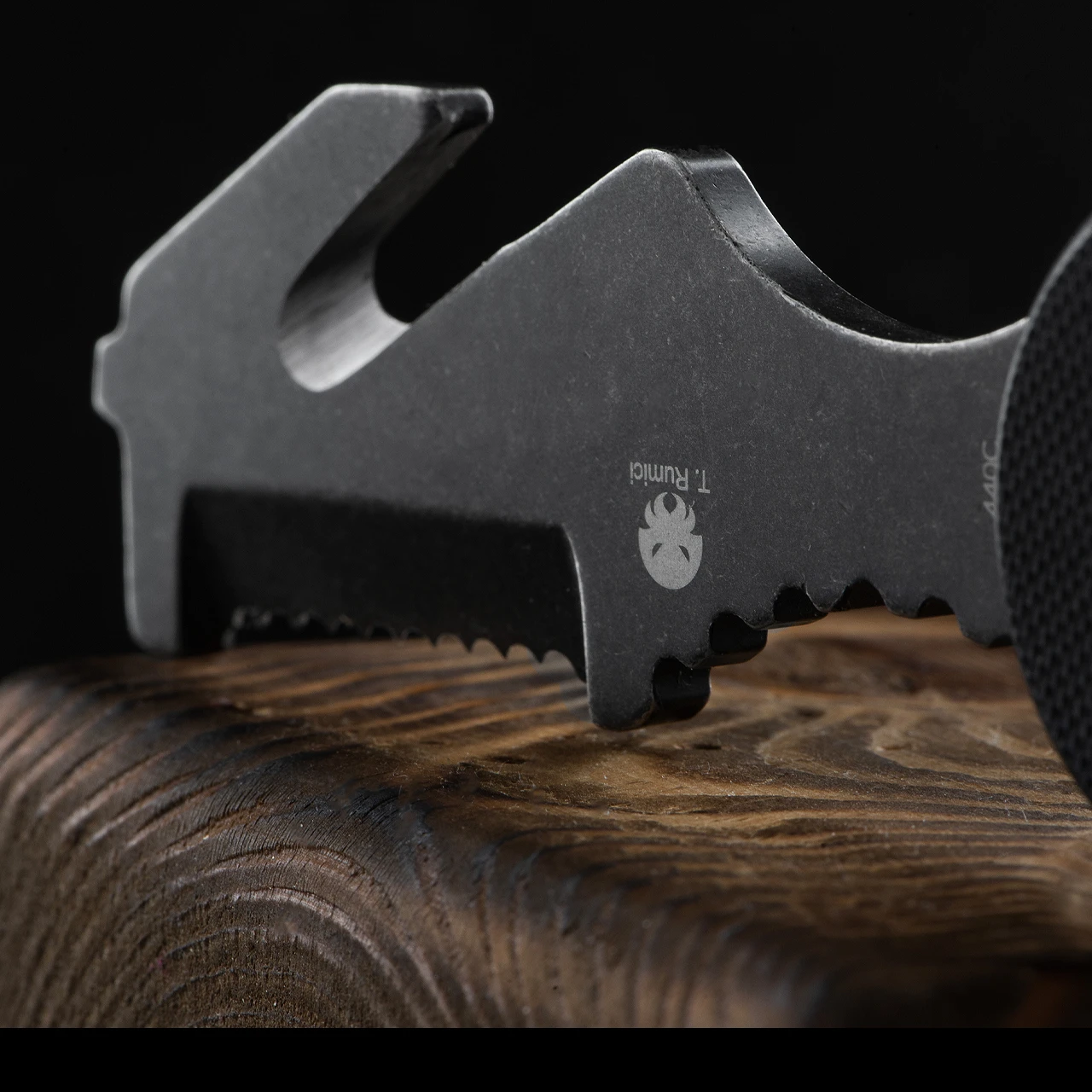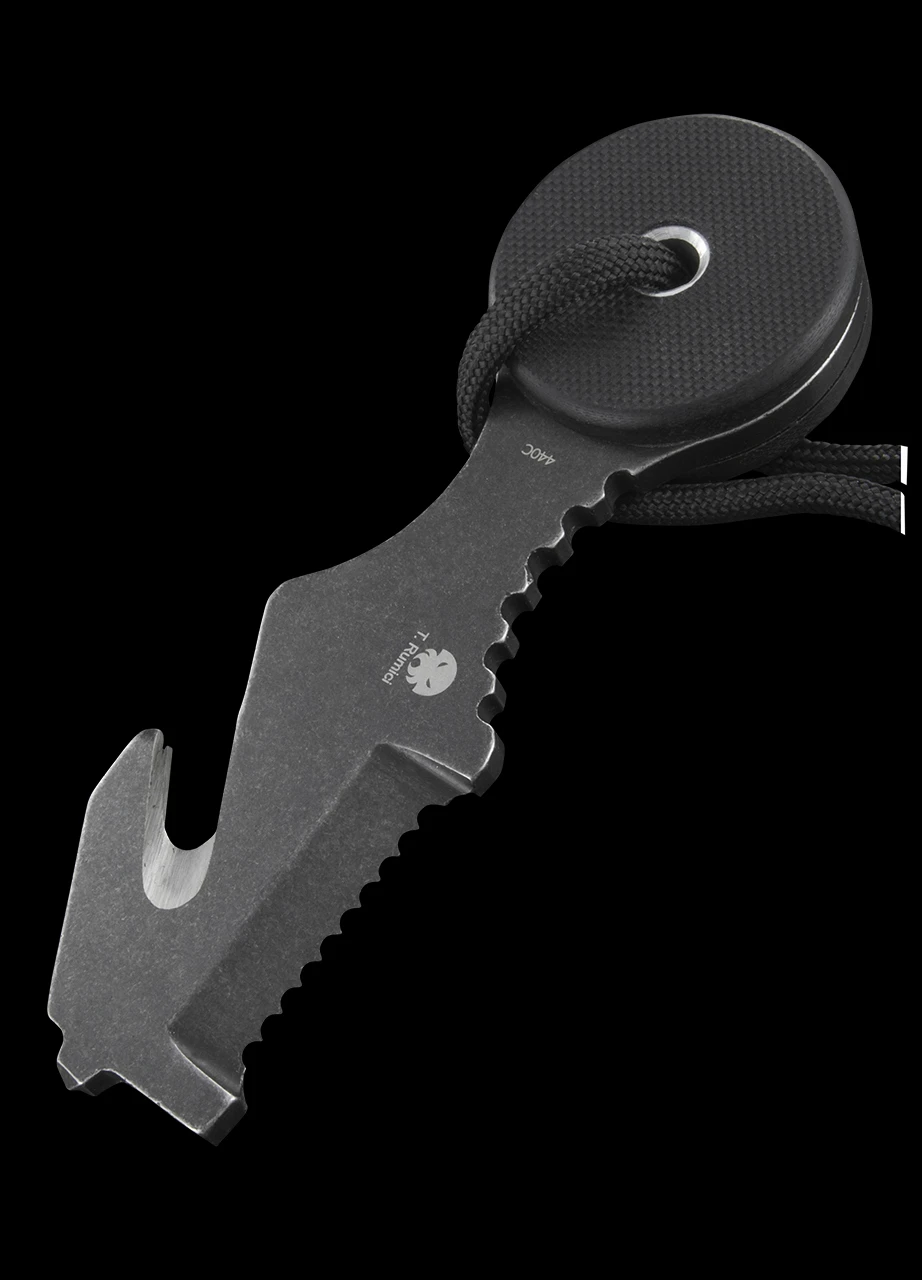 The Black Fox Plan B Rescue is a tool you want to have in your glove compartment or in your emergency kit. Those in the emergency services take note. The design is simple, one piece of 440C stainless steel with two slabs of G10 to form a handle create a tool that could save a life. The tool incorporates a seat belt cutter, a window breaker and a serrated blade. A generous section of jimping helps to keep the blade under control during use.