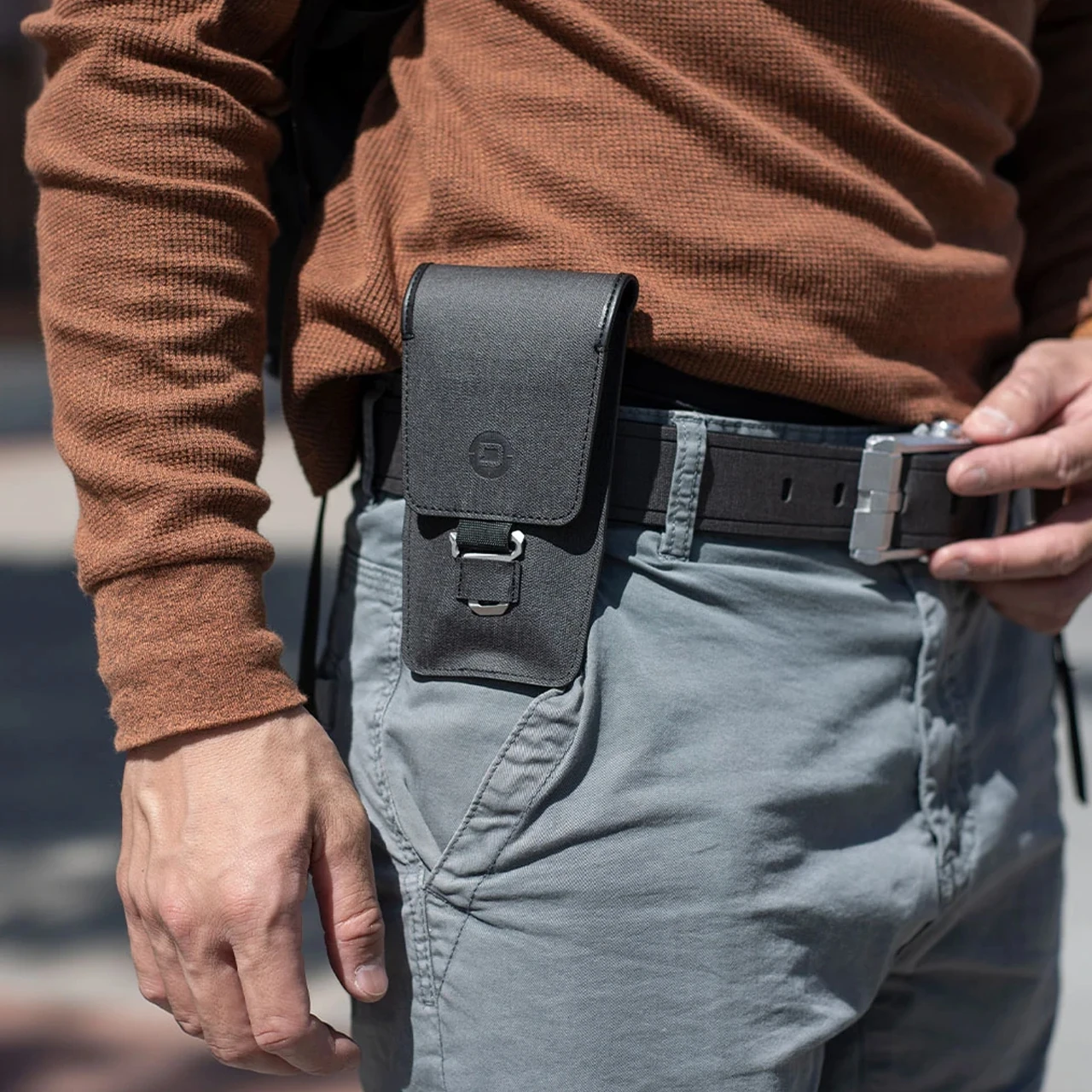 Made of water resistant DTEX material and secured by the MT01 Clasp & slot, the CA02 delivers comfort and durability. The CA02 is equipped with two inner pockets, one large pocket and one small velcro pocket for micro carry. In addition, a large through slot in the back allows the pouch to also function as a holster for belts and straps.