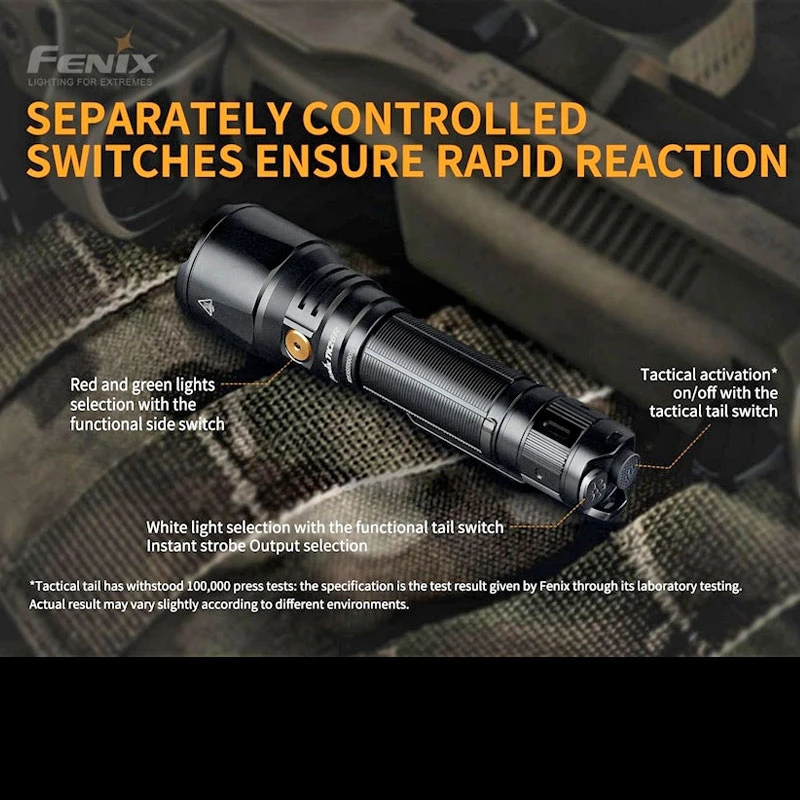 Includes: 1 x Fenix ARB-L18-3500 3500mAh Li-ion battery, USB type-C charging cable, lanyard, holster, spare o-ring, spare rubber boot switch.