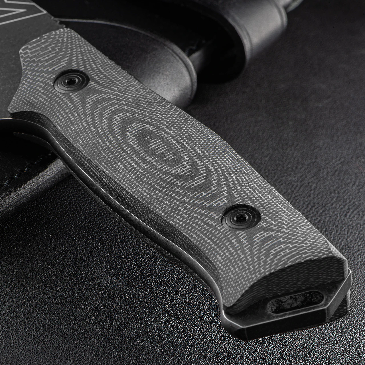 The handle is made of durable Micarta. It is ergonomic and easy to handle and is equipped with holes for Paracord to achieve a higher level of safety during demanding work.