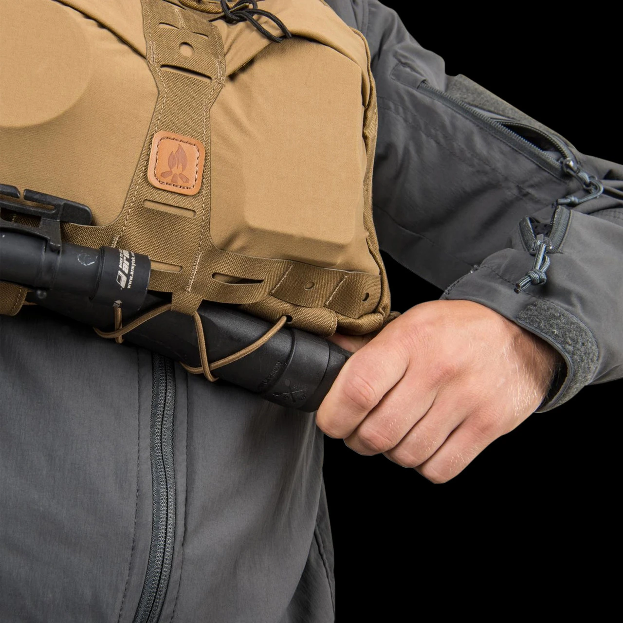 Design of the minimalistic, yet comfortable harness will not interfere with any type of backpack shoulder straps. External mounting points, compatible with MOLLE/PALS give you the possibility to expand the chest pack according to your needs.