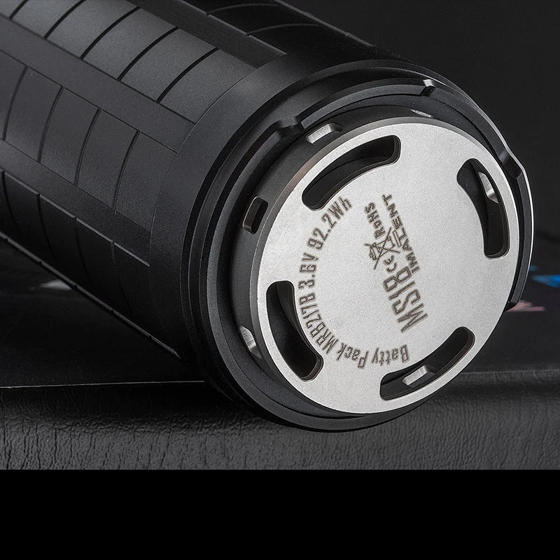 The Imalent MS18 is an incredible feat of technology and engineering. This beast features 18 CREE XHP70.2 LEDs which, when combined, produce a beam that will carry for 1350 metres. Due to the extraordinary amount of light produced the mechanism includes a fan which automatically switches on after a minute to cool the module. It then reduces the output to 25,000 lumens and then once cooled after a couple of seconds it is ready to go full on 100,000 lumens again.