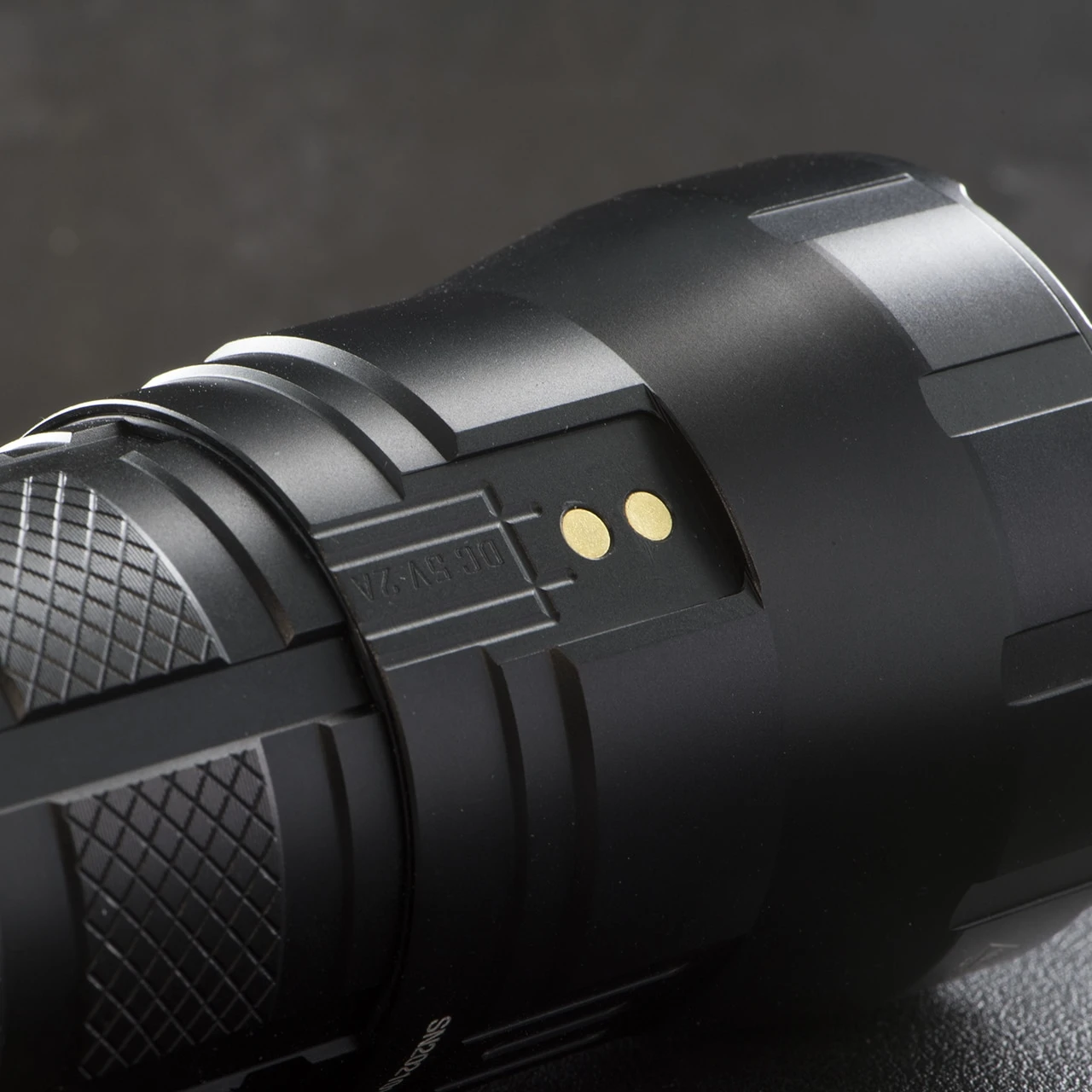 The Imalent RT90 is a rechargeable LED flashlight with a compact, hand held size that blasts out of a 4,800 lumen beam with an extraordinary 1308 meter distance thanks to its deep smooth reflector. This also helps to focus the beam to a stunning spotlight. The amount of light that the IMALENT RT90 flashlight emits is truly remarkabl. It makes it a great option for search and rescue professionals or just to impress your mates! Featuring a strobe setting and 5 additional levels of power it is also perfectly suited to night walking and adventuring.