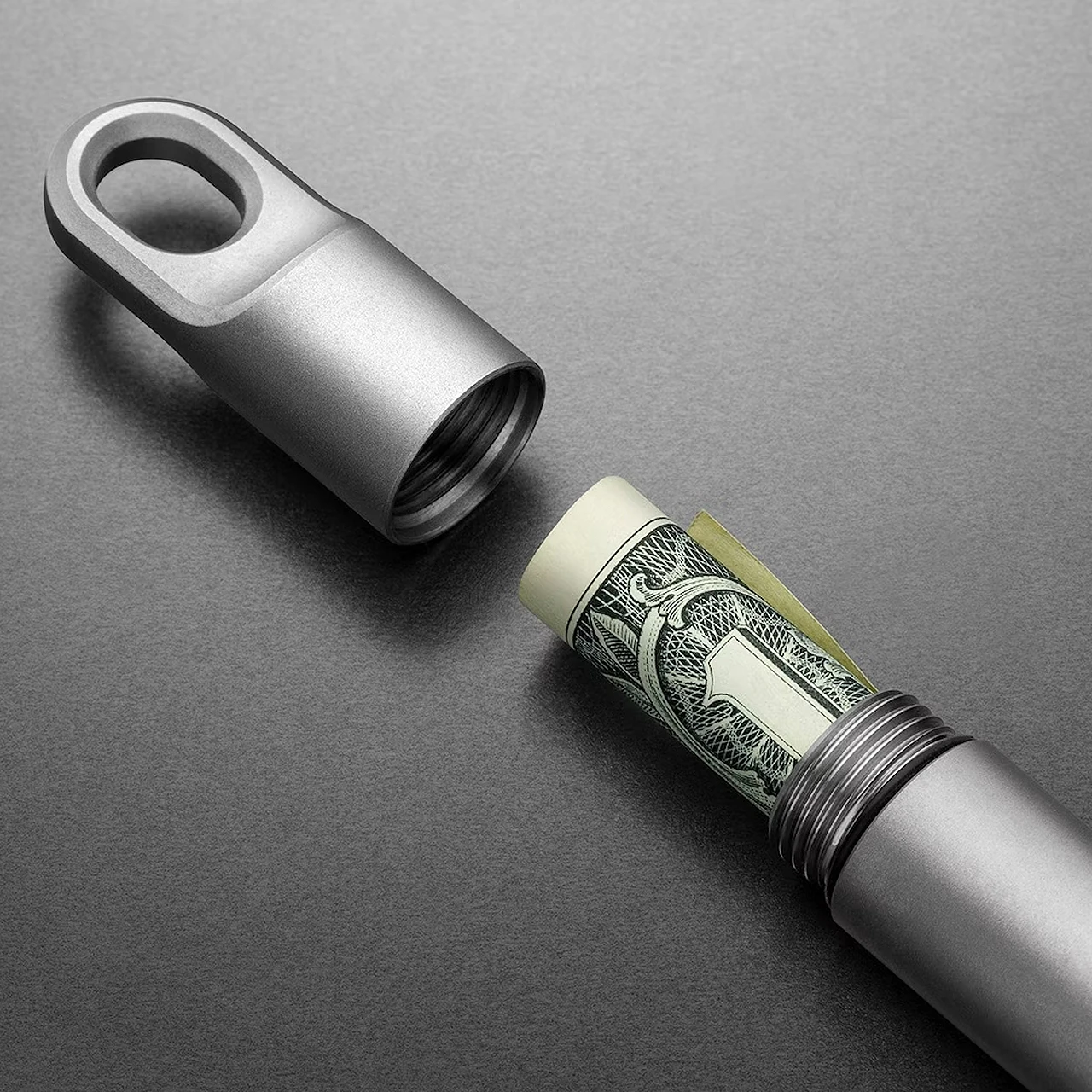 The James Brand Randolph lets you take you smallest valuables (whatever they may be) with you, from the office to the backcountry. The Randolph holds 8 toothpicks but can also carry things like cash or your medications of all kinds. Made of 6AL4V titanium with a water-resistant screw on cap with a lanyard loop, the Randolph is light, strong and will ride easily in your pocket all day.