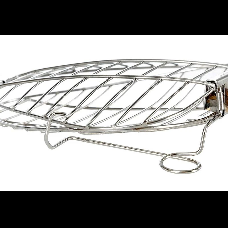 • The wire mechanism attaches the grill securely to a stick and it can be locked in place when folded out and used as a gridiron.