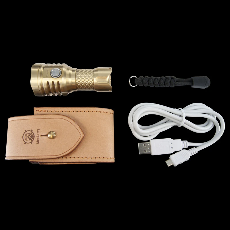 The brilliantly compact and bright MecArmy PT16 Brass produces an astounding 1200 lumens from a mere 8cm length body. It features an electronic side switch operation and a rapid quick recharge time of just 90 minutess. Using a Micro-USB port, easily recharge the battery from a USB port on your computer or any standard 5V 1A adapter. Its rugged and durable brass body and extremely well made emitters makes the PT16 a great addition to your EDC gear.