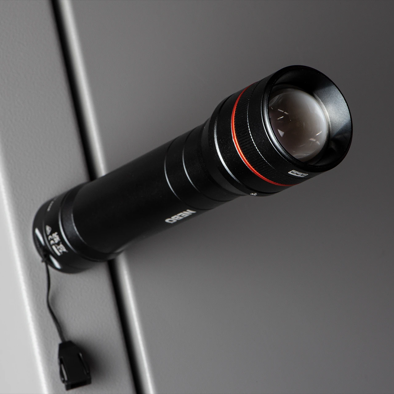 The Nebo Newton 750 flashlight is a powerful handheld flashlight with four light modes. The easy-touch rear positioned switch makes it a breeze to switch between modes and the powerful LED in this flashlight can light up a football field!