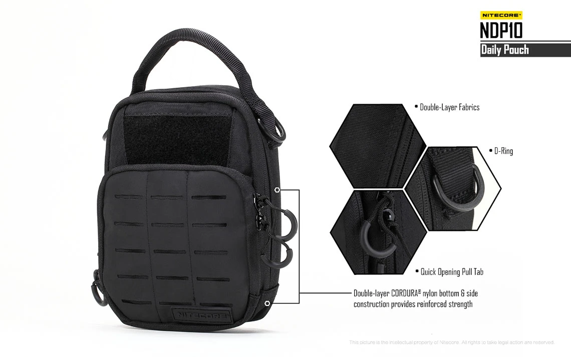 The Nitecore NDP10 is a rugged, hard-wearing pouch that is ideal for daily use and everyday carry. Made from military-spec 1000D Cordura nylon and Hypalon synthetic rubber, the NDP10 can be used anywhere, in any condition.