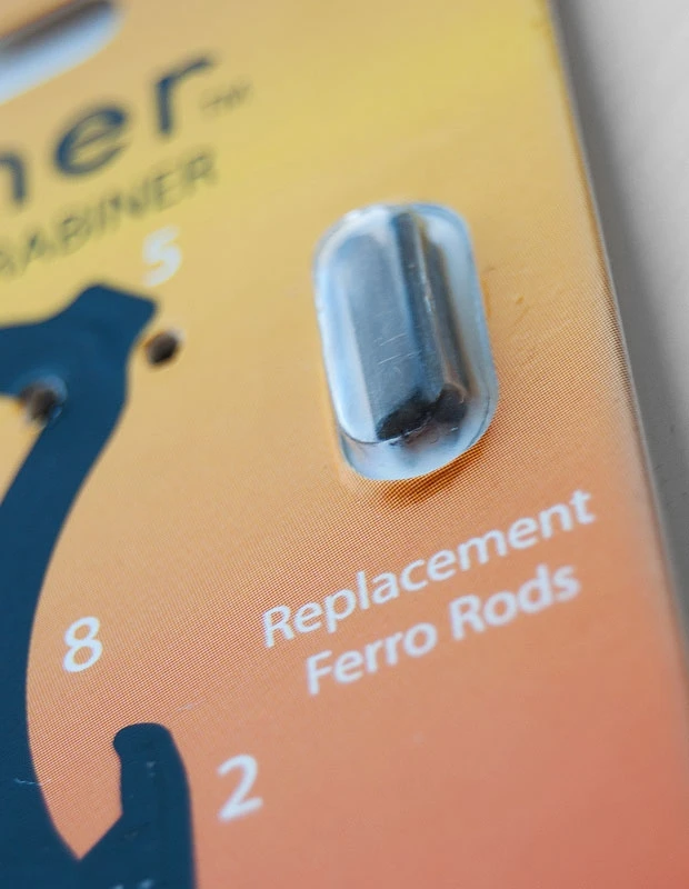 The Outdoor Element Firebiner is a survival carabiner that is as much for everyday use as it is for survival enhancement. Featuring an inset cord cutter, bottle opener, hang slots and a fire striking wheel this extremely handy tool will hang off your belt loop or rucksack and save the day at a moments notice.