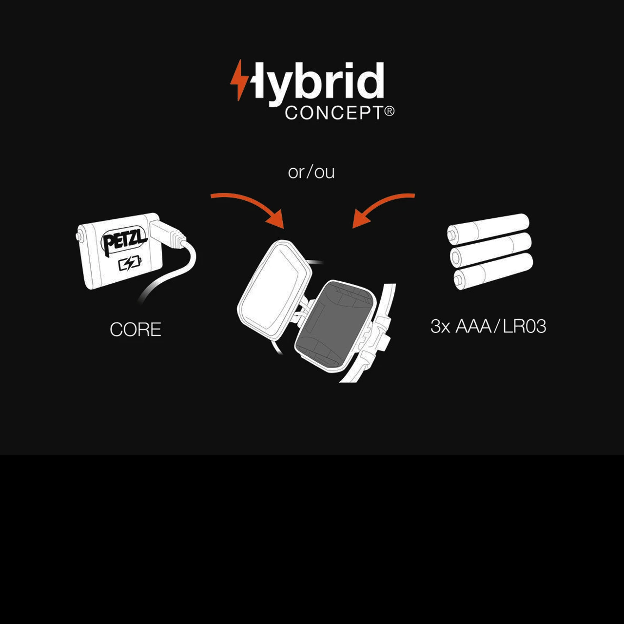 The rechargeable Petzl IKO CORE headlamp combines multiple technologies to offer 500 lumens at only 79 g. Featuring an AIRFIT headband, an ultra-thin lamp body and an energy source worn in the rear, the headlamp is balanced and comfortable enough to be imperceptible. The multiple LEDs are ideally distributed to provide uniform lighting, for optimal visual comfort. Thanks to its HYBRID CONCEPT design, IKO CORE comes with the CORE rechargeable battery and is also compatible with three AAA/LR03 batteries (not included). It is versatile: can also be worn around the neck, or transformed into a lantern, using the storage pouch. It can be flattened to reduce bulk, making it practical for all outdoor activities.