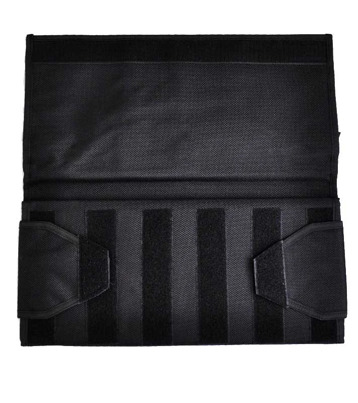 Constructed from heavy-denier polyester Cordura, the Spyderco SpyderPacis available in two sizes Small (18 pockets) and Large (30 pockets). Each pocket is fronted with a clear plastic window for viewing knives tucked inside. It tri-folds over and seals closed by way of a Velcro strip running the width of the pack. The knives remain secure and separated in their pockets and cannot rub or scratch against each other. An adjustable length shoulder strap attaches with two durable steel D-rings letting you hang the pack for display on a wall or sling it over your shoulder to take with you. Spyderco’s name and bug logo are embroidered in gold thread on the closing flap.