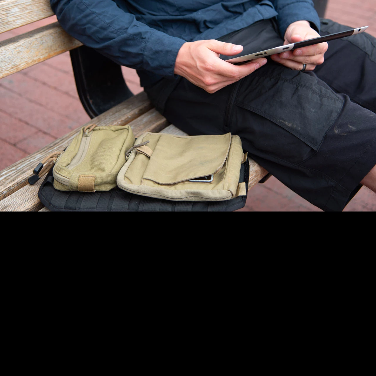 - Full length overlapping pocket with stretch panel closure
