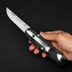 Practical and compact, the TB Outdoor Bivouac is made in Thiers by the French cutler Tarrerias-Bonjean. It is the essential ally for all your camping activities, its tempered stainless steel, locking blade is effective at the table as well as for many other applications and the fork and spoon make for handy eating tools. It also includes a can opener and corkscrew. Its ergonomic handle is made from light and shock-resistant ABS plastic and offers an easy and comfortable grip.