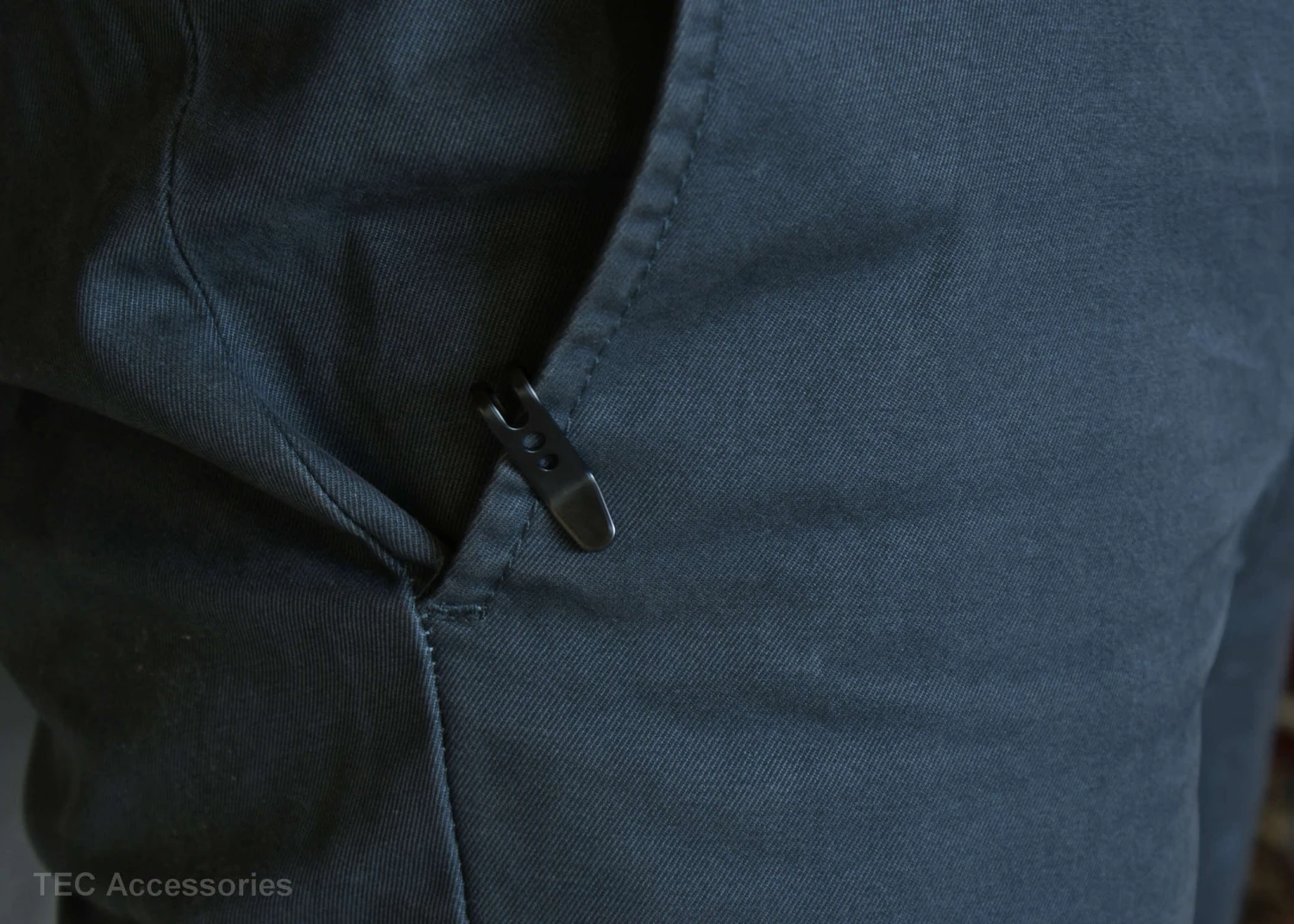 The cure for the “too-big keychain” pocket bulge, the P-7 Suspension Clip slides on to the top edge of your pocket, allowing anything clipped to it to be suspended part way into your pocket. This provides a flatter, more streamlined way of carrying your keychain gear. Put large items, like your key fob, on the P-7 clip to keep it separate from the rest of the items in your pocket.