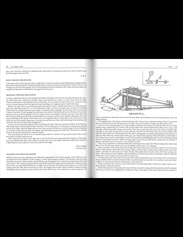 A vintage collection of tips, tactics, and anecdotes from the finest trappers the United States has ever seen, The Trapper’s Bible is an essential reference guide for hunters, trappers, and historians.